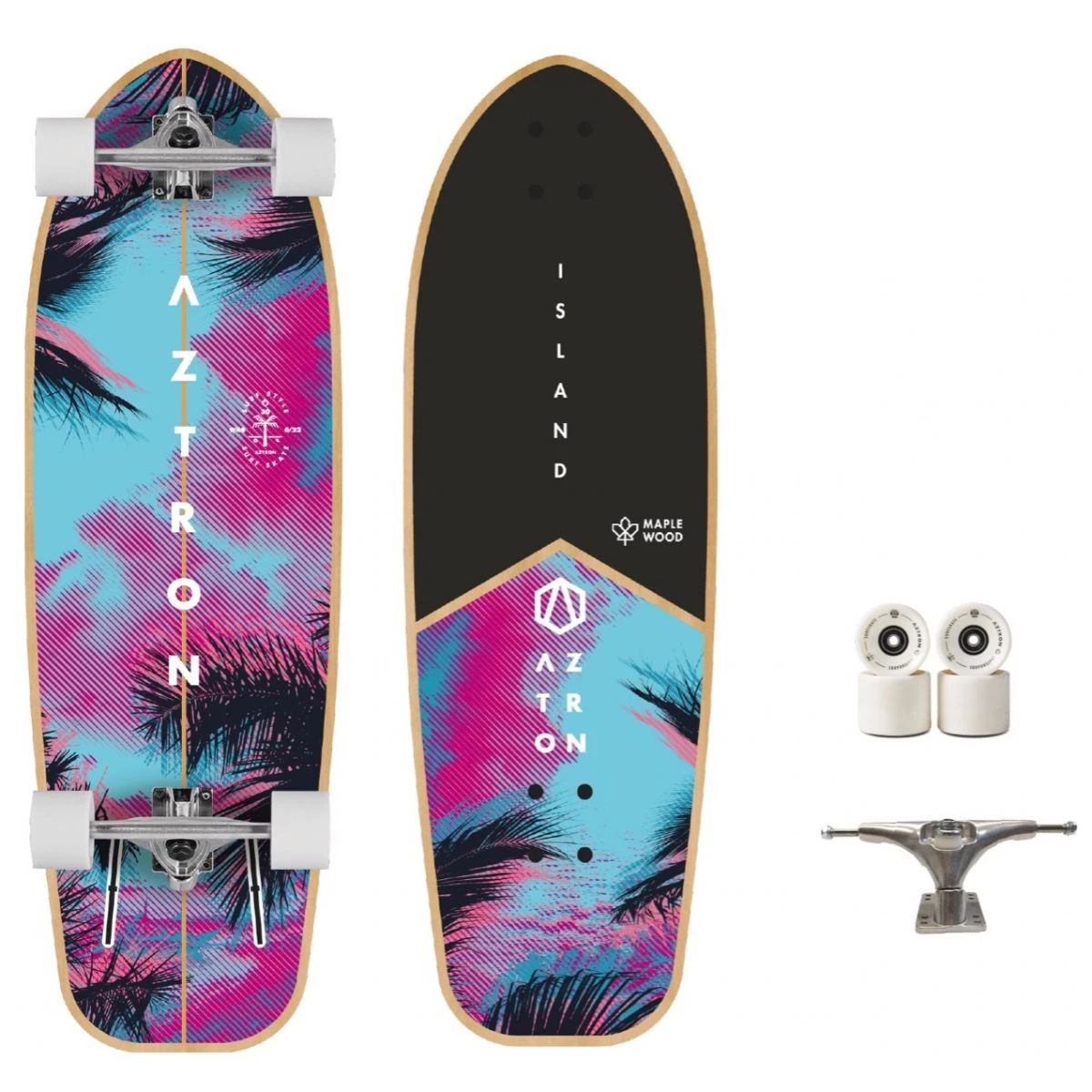 Klassisk 7 lags Kanadisk Ahorn træ, med indlagte Carbon stringer. Det betyder et super stift letvægts board. Monteret med spritnyt Surf Skate System med 65*51mm hjul.